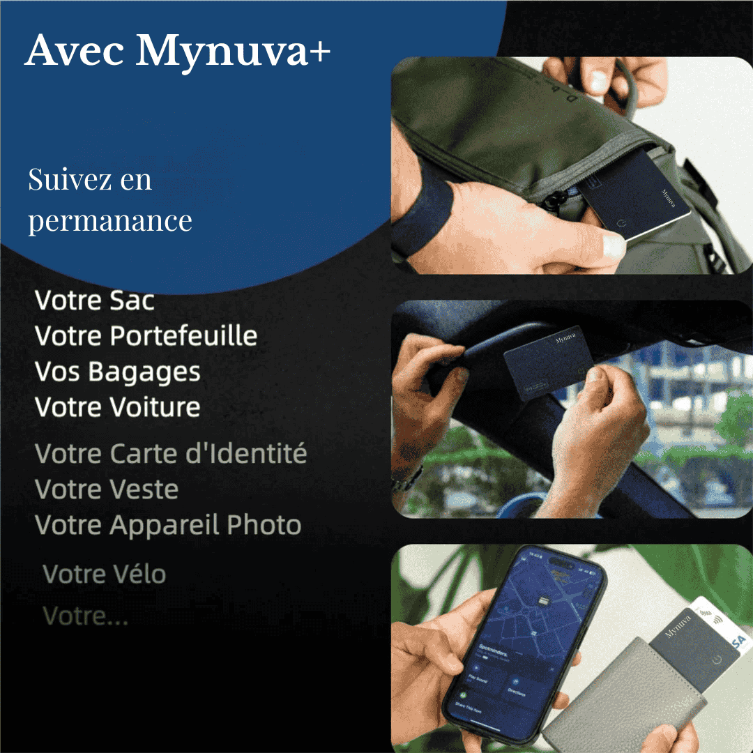 La carte Mynuva s’intègre parfaitement à l’application Localiser d’Apple pour un suivi simple, sécurisé et instantané. Il vous suffit de la connecter à votre iPhone®, et vous pourrez localiser vos objets à tout moment, où que vous soyez. En cas de perte, déclenchez une alerte sonore ou activez le mode Perdu pour bénéficier de la puissance du réseau mondial Apple, tout en conservant votre confidentialité.