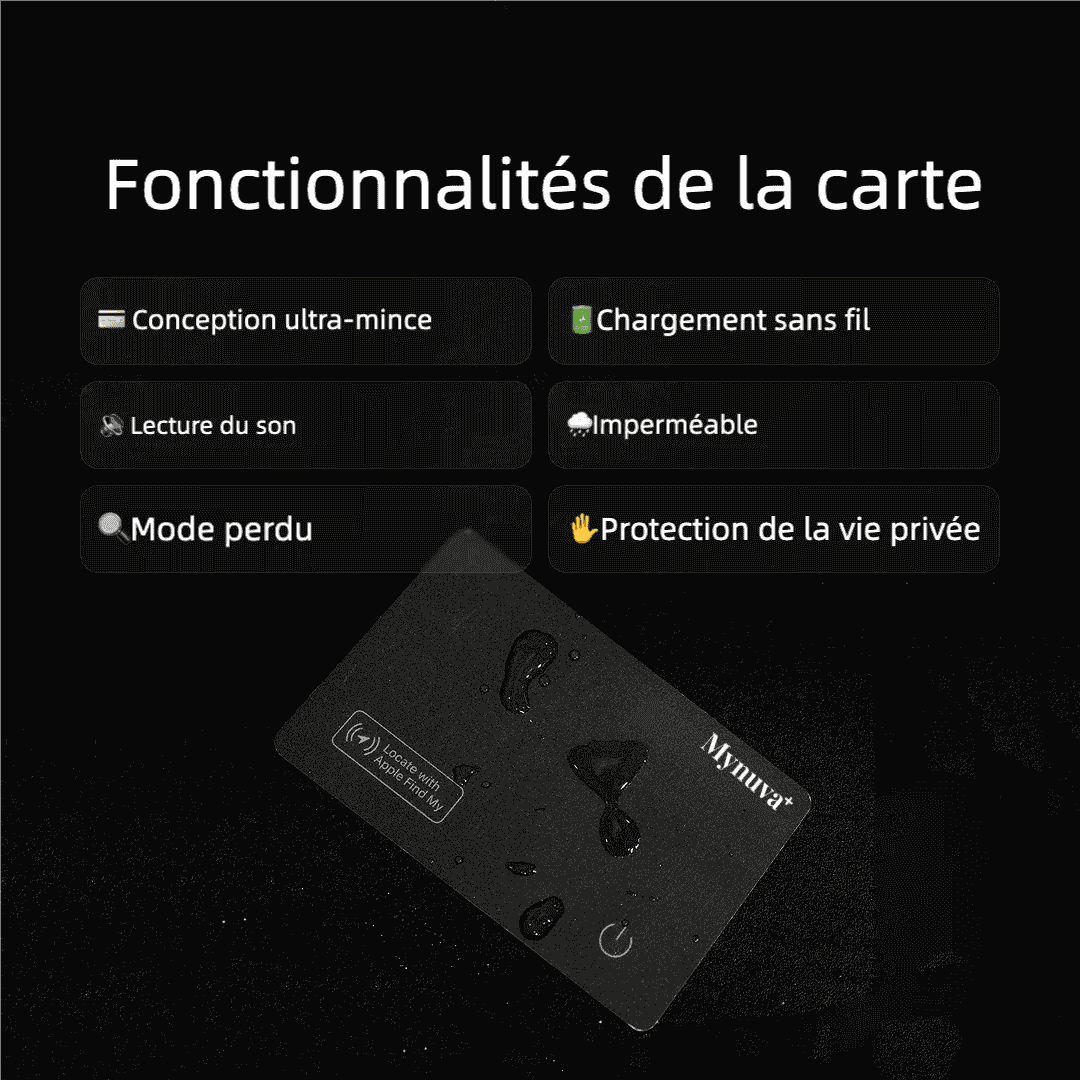 Cette carte de suivi, au format carte bancaire, représente une avancée majeure en matière de sécurité. Entièrement compatible avec le réseauApple® Localiser®, elle vous permet de protéger ce qui compte, en toute simplicité et sans compromis.
